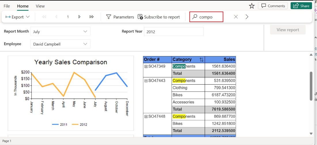 This month, we introduced the ability to search for content across all pages of a paginated report on the PBI service. The paginated report can either be published to the service or can be authored on the PBI service. Specify any required parameters to view the report before searching. The search works across all pages of the report.