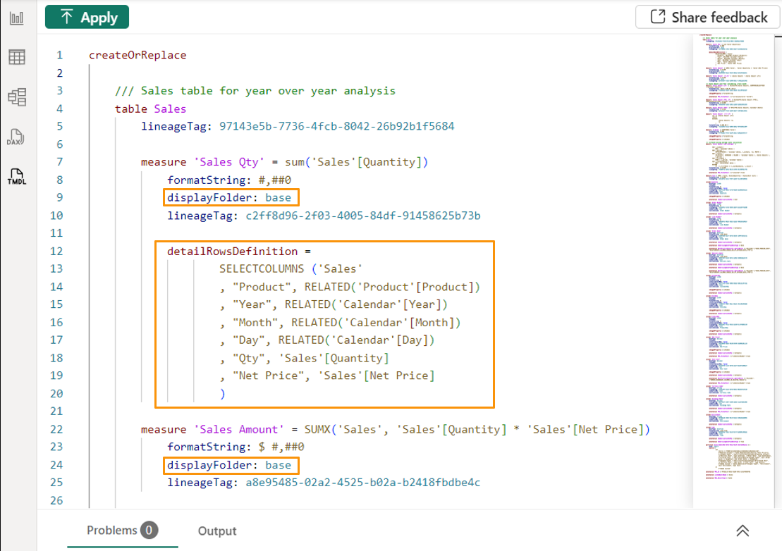- Get more control and transparency, showing all semantic model objects and properties, and allowing changes to items not available in Desktop GUI, such as IsAvailableInMDX or DetailRowsDefinition.